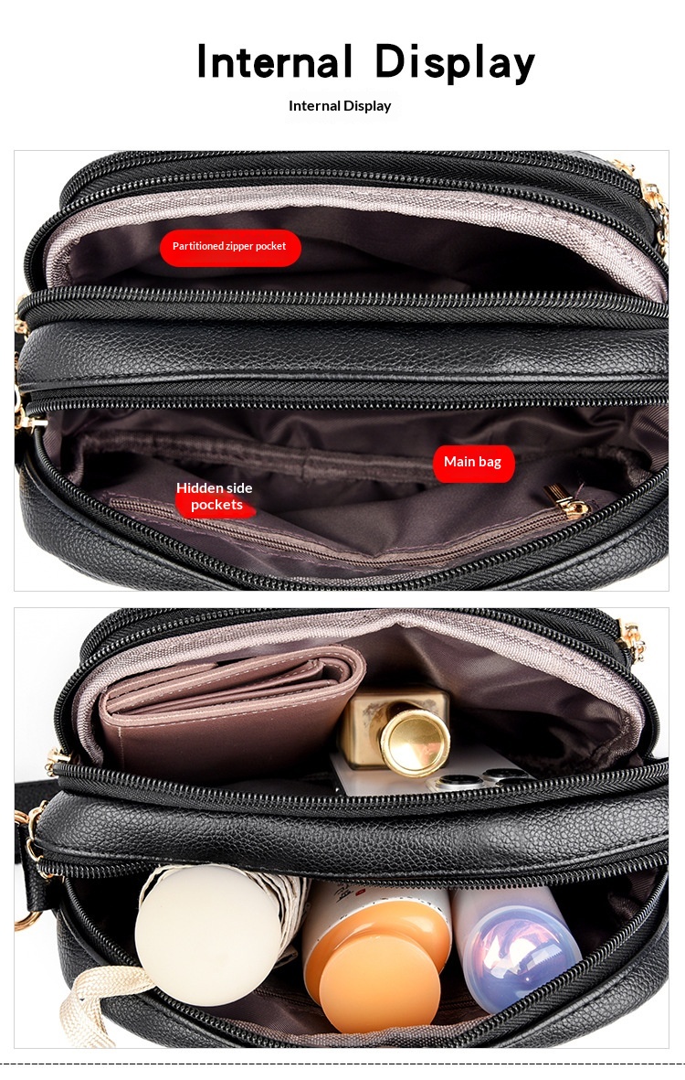 Product information: Lining material: polyester Applicable scene: everyday wear Colors: red, blue, black Outer pocket type: inner patch pocket Hardness: soft Material: PU Bag shape: horizontal square Internal structure: phone pocket, ID card pocket, zippered compartment Trendy element: stitching Style: urban minimalist Shoulder strap quantity: single strap With or without compartments: yes